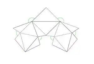 - Из всех известных на сегодняшний день изгибаемых многогранников без самопересечений наименьшее число вершин (девять) имеет многогранник, построенный немецким математиком Клаусом Штеффеном[3]. Многогранник Штеффена можно легко вырезать из бумаги (см. статью).