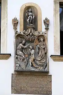 Другим напоминанием о тех событиях служит латинская надпись готическим шрифтом на христианском барельефе, передающая нравственную атмосферу того времени: