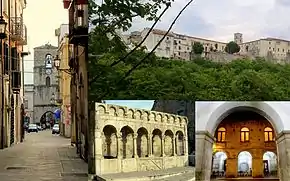 - Неофициальный символ города — «братский источник», составленный в 1835 г. из античных колонн, некоторые из которых, по преданию, происходят из гробницы Понтия Пилата. Сохранились также древнеримский мост и соборная церковь, восстановленная после землетрясения 1805 года.