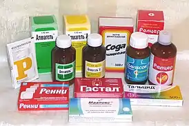![]() Различные антацидные препараты, применяемые для снятия симптома изжоги | |