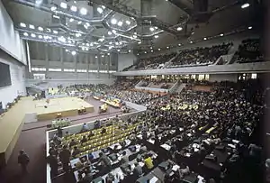 ![]() Дворец спорта «Измайлово» в июле 1980 года во время олимпийского турнира тяжелоатлетов | |