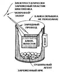 Электростатическое зарядное устройство помещается поверх сделанных из алюминиевой фольги 8-слойных «лепестков» (каждый весом 8,2 грамма) и заряжает их электрическим зарядом, который потенциально может достигать величин от 4000 до 4500 вольт. Одноимённый заряд, полученный подвешенными друг напротив друга на изолирующих нитях лепестками, заставляет их отталкиваться и расходиться в противоположные стороны. При воздействии же радиации на прибор в его ионизационной камере образуются ионы, которые уменьшают заряд на лепестках, и те начинают опадать. Их результирующее смещение может быть измерено, а с помощью специальных таблиц установлена мощность ионизирующего излучения.