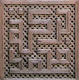 Геометрическое четырёхкратное начертание имени Мухаммеда, выполненное куфическим почерком, часто используется как орнамент в исламской архитектуре