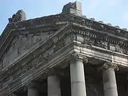 | Фрагмент мозаики из терм в Гарни | Фрагмент бронзовой статуи древнеармянской богини Анаит на почтовой марке Армении | Рельефные орнаменты храма Гарни |