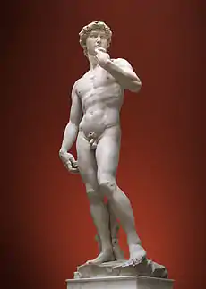 Картины и скульптуры Микеланджело Буонарроти полны героического пафоса и, одновременно трагического ощущения кризиса гуманизма. Его картины прославляют силу и мощь человека, красоту его тела, одновременно подчёркивая его одиночество в мире.