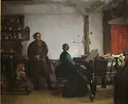 Бытовой жанр в американской живописи получил развитие с первой половины XIX века. Этому способствовало книгопечатание с описаниями событий и творчество сторонника бытового жанра, художника Уильяма Сиднея Маунта[14]. Художника Уильяма Сиднея Маунта считают основателем бытового жанра в американской живописи.