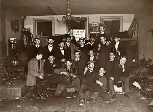 На рубеже XIX и XX веков крупные города Соединённых Штатов переживали крупный рост. Население Нью-Йорка увеличилось с полутора миллионов в 1890 году[23] до около трёх с половиной в 1900 году[24]. Городские газеты того времени стремились передавать новости как можно более натуралистично. Фотоаппараты того времени ещё не могли использоваться для оперативной съёмки происшествий. Поэтому газеты нанимали художников, которые зарисовывали иллюстрации для заметок. По большей части они изображали неприглядные стороны городской жизни. С 1896 по 1904 года вместе с Робертом Генри художники перебрались в Нью-Йорк[25]. Там к ним присоединились художники Гленн Колман, Джером Майерс и Джордж Беллоуз. Главными объектами зарисовок студийцев были улицы с их типичными представителями: беспризорниками, проститутками, уличными атлетами, боксёрами и иммигрантами[26].
