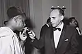 Камерунский президент Ахмаду Ахиджо с израильским послом в Камеруне, Эльхананом Гафни, на приёме в отеле «Кинг Дэвид», 20 мая 1963 года