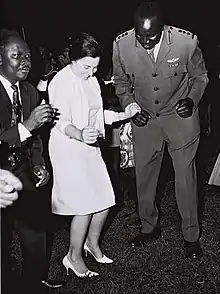 Амин посетил Израиль в 1971 году; министр обороны Моше Даян поднимал за его здоровье тост.[4] Израильтяне были ответственны за снабжение и тренировку большей части угандийской армии, а также за некоторые строительные проекты в стране. В феврале 1972 года Амин внезапно решил посетить Ливию (путешествуя на израильском самолете) и встретился там с лидером полковником Каддафи.[5] После этого визита, Амин занял словесно антиизраильскую позицию.