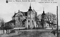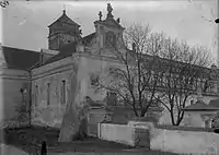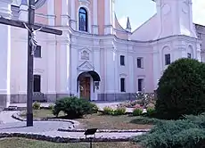 Монастырский костёл (1606—1610) построен по проекту львовского архитектора Джакомо Мадлена (Якуб Мадлайн), перестроен в середине XVIII в. итальянским архитектором Паоло Фонтана. Здание кирпичное, зального типа, с ризалитами и притвором, перекрыт сводами. Кровля черепичная. Над южным ризалитом башня, покрытая невысоким шатром. Над притвором открытая галерея с металлической решёткой. Над западным фасадом и северным ризалитом барочные фронтоны, украшенные волютами и пилястрами[27].