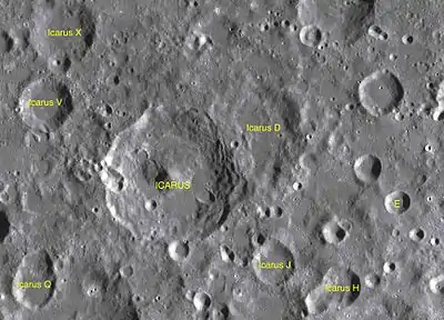 - Образование сателлитного кратера Икар D относится к донектарскому периоду[1].
