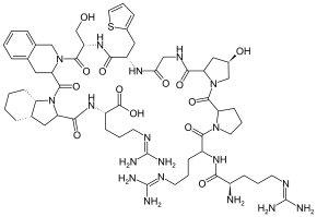 (2S)-2-[[(3aS,7aS)-1-[2-[(2S)-2-[[(2S)- 2-[[2-[[(4R)-1-[1-[2-[[(2R)-2-amino-5-(diaminomethylideneamino) pentanoyl]amino]-5-(diaminomethylideneamino)pentanoyl]pyrrolidine- 2-carbonyl]-4-hydroxypyrrolidine-2-carbonyl]amino]acetyl]amino]- 3-thiophen-2-ylpropanoyl]amino]-3-hydroxypropanoyl] 3,4-dihydro-1H-isoquinoline-3-carbonyl] 2,3,3a,4,5,6,7,7a-octahydroindole-2-carbonyl]amino]- 5-(diaminomethylideneamino)pentanoic acid |