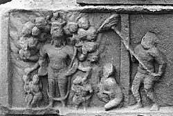 Деревянный образ Вишварупы в составе панели, изображающей процессию колесниц. Тамилнад, XVII—XVIII века. Из коллекции Музея Гиме.