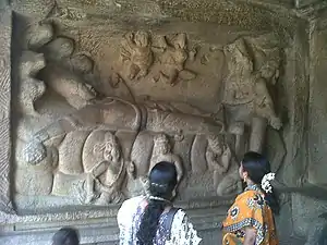По мере того как индуизм пуран затмевал индуизм Вед, изложение историй стало более популярным, чем повторение мантр, образы богов, правителей и святых вырезались на скалах и в пещерах. Некоторые из самых ранних каменных изображений индуистских богов и богинь можно найти в пещерах Элефанты и Аджанты возле Мумбая и в Махабалипураме около Ченная. До этого индусы довольствовались визуализацией богов в реках, горах, скалах и горшках…— Девдатт Паттанаик «Кто такой индус? Как соперничество обогатило индуизм», 2018 год[7]