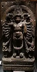 Описание: божество изображено в героической сцене: нанесение поражения противнику (демону) и восстановление дхармы, ему поклоняются для достижения успеха, власти и победы над внутренними врагами (гнев, жадность, похоть, зависть и т. д.). Местоположение: мурти устанавливается в густонаселённых местах, прежде всего, центре города. |