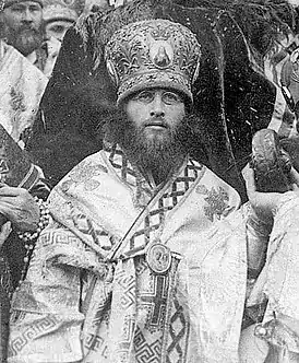 ![]() Епископ Иларион во время выноса тела Патриарха Тихона после отпевания. | ||