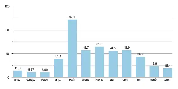| Расход воды | 34 м³/с (24 км от устья) |