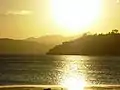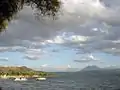 ![]() Вид Илопанго с востока, город Сан-Сальвадор и одноимённый вулкан в дымке за озером. | |
