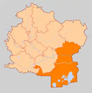 - в 1935—1956 гг. в Калининскую область, Теблешский район (севернее реки Медведицы) и Кушалинский район (южнее Медведицы),