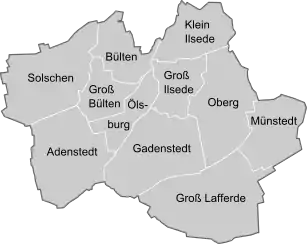 В 2015 году прошло слияние коммуны Ильзеде с коммуной Лаштедт. Новая коммуна Ильзеде подразделяется на 11 сельских округов: