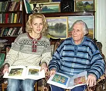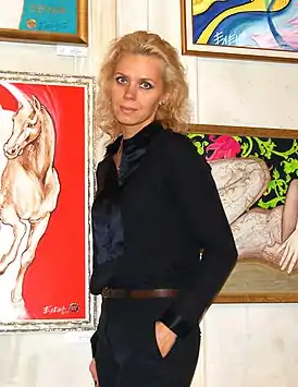 ![]() Елена Ильина на персональной выставке в ЦДЖ (Москва) и презентации книги «Звёздные девушки» (03.04.2011) | |