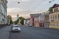 Знаковыми для улицы являются ряд строений каменных домов первой половины XIX века, построенные по проектам известного нижегородского архитектора Г. И. Кизеветтера: № 23 (дом купца В. М. Арясова), № 25 (дом М. И. Редозубова), № 26 (дом Д. С. Кузнецова), № 41 (дом Обросимовых), № 50 (дом С. С. Долганова), № 61 (дом М. А. Полтанова), № 65 (дом А. Д. Рычина), № 68 (дом Н. И. Белильникова (уточнённое название — дом Н. П. Котельникова)), № 79/20 (дом Е. С. Веренинова), № 96 (дом И. С. Веренинова), № 98 (дом Е. Г. Башкирова). В архитектурном плане они дают представление о переходном этапе от русского классицизма к русскому ампиру и ранней эклектике в архитектуре Нижнего Новгорода[8].