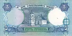 Изображение церкви присутствует на обратной стороне 5-гривневой купюры.