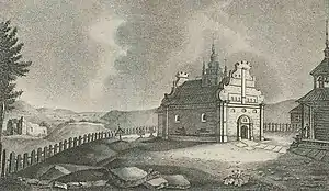 В 1869 году рядом с церковью были построены колокольня и галерея, которая соединяла её с церковью.
