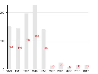 Число жителей по семейным спискам 1879 г.: 75 м. п., 76 ж. п.; по приходским сведениям 1879 г.: 70 м. п., 80 ж. п.