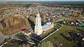 Церковь Воскресения Христова. Строительство началось в 1822 году, освящён же храм был только 22 сентября 1840, освящение проводил Филарет, митрополит Московский. Вместимость составляла 2 тысячи человек. В 1850 году пристроили колокольню, а в 1868 рядом построили церковно-приходскую школу.