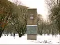 Ильинский сад со стороны шоссе Революции (февраль). Стела мемориальной трассы «Ржевский коридор»