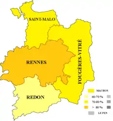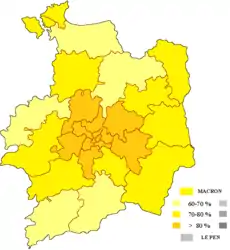 2-й тур: Эмманюэль Макрон — 77,67 % (в целом по стране — 66,10 %); Марин Ле Пен — 22,33 % (в целом по стране — 33,90 %).