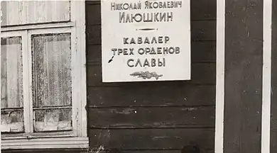 [1]Николай Яковлевич Илюшкин (14 ноября 1908, дер. Глинское, Новгородская губерния — 4 марта 1980, дер. Плосково, Вологодская область). Полный кавалер Ордена Славы. Во время Великой Отечественной Войны был наводчиком орудия 853-го артиллерийского полка 263-й стрелковой дивизии. Участвовал в боях с захватчиками на Карельском, Юго-Западном, 4-м Украинском, 1- Прибалтийском и 3-м Белорусском и 2-м Белорусском фронтах. Член ВКП(б) с 1944 года.