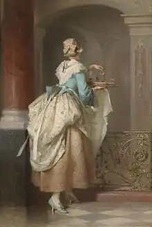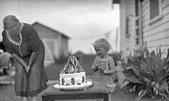 Девочки с именинным тортом. Открытка 1920 года - Иоганн Вольфганг фон Гёте провёл 24—30 августа 1801 года в Готе в роли гостя на дне рождении Принца Августа Саксен-Гота-Альтенбурга, на его 52 дне рождении, которое произошло 28 августа того же года: «… когда пришло время десерта, вошёл принц в полной ливрее во главе с мажордомом. Он нёс большой торт с разноцветными горящими свечами — всего около пятидесяти свечей — которые начали таять и грозили сгореть, вместо того, чтобы оставить достаточно места для свечей, указывающих на предстоящие годы, как в случае с подобными детскими праздниками»[4].