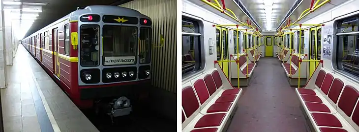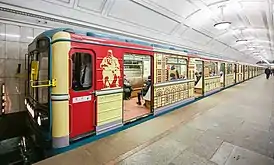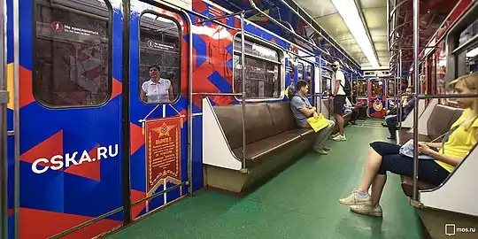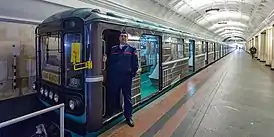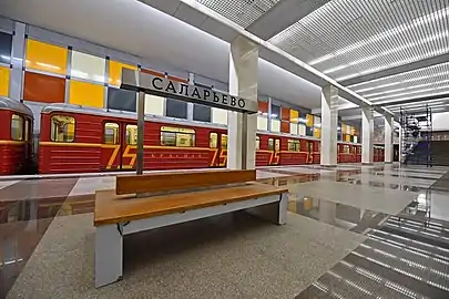 ![]() Поезд в современном оформлении на станции «Коммунарка» | |