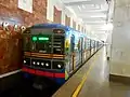 Запущен 12 июня 2018 года вместе со станцией метро "Стрелка". Ходит по Автозаводской и Сормовско-Мещерской линиям. Головные вагоны украшены декоративной надписью "Максим Горький". Промежуточные никак не оформлены.