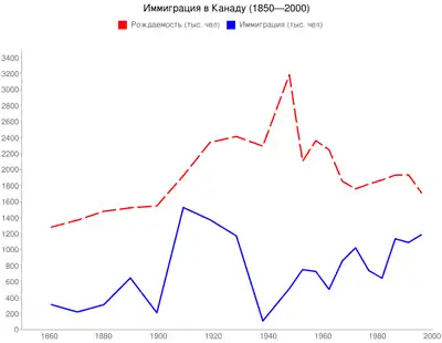 Уровень иммиграции в 1993 году достиг пика на последнем году правления Прогрессивного консервативного правительства и поддерживался Либеральной партией Канады. Амбициозной цели ежегодно принимать 1 % от населения в качестве иммигрантов мешали финансовые трудности. Либералы были привержены делу повышения фактического уровня иммиграции далее к 2005 году. Все политические партии в настоящее время осторожны с критикой высокого уровня иммиграции.