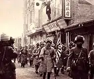 13 декабря 1937 года ворвавшиеся в Нанкин японцы устроили резню мирного населения. По официальной версии китайского правительства в течение примерно шести недель солдаты жгли и грабили город, уничтожали самыми зверскими способами его жителей, насиловали женщин. Число пострадавших мирных жителей оценивается китайской стороной в 300 000 погибших и более 20 000 изнасилованных женщин (от семилетних девочек до старух). По данным послевоенных трибуналов число убитых составило более чем двести тысяч. Одной из причин разницы в цифрах является то, что одни исследователи включают в число жертв нанкинской резни только убитых в пределах города, а другие учитывают также погибших в окрестностях Нанкина.