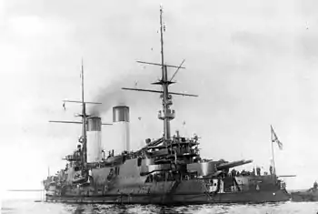 ![]() Эскадренный броненосец «Император Александр III» на Большом Кронштадтском рейде, август 1904 года |