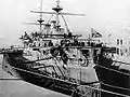 Броненосец во время докования в Гонконге, конец 1895 года.