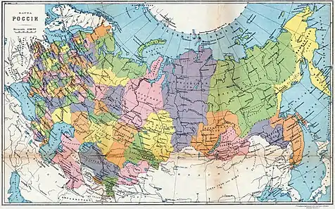 Российская империя была третьим по площади из когда-либо существовавших государств (после Британской и Монгольской империй) — простиралась до Северного Ледовитого океана на севере и Чёрного моря на юге, до Балтийского моря на западе и Тихого океана на востоке. Форма правления — Абсолютная монархия до 1905 года. Глава империи — Император Всероссийский.