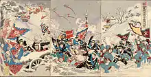 В 1673—1674 годах генерал У одерживал победы над силами Цин[59]. Имея поддержку большей части ханьцев (что понятно хотя бы из того, что они не присоединились к восстанию) и ханьской элиты, а также испытав в бою и ханьцев, и маньчжуров, император ответил на эти поражения отправкой на юг огромной армии из более чем 900 000 китайских солдат (не знаменосцев) вместо Восьмизнамённой армии[60]. В итоге повстанцы были повержены Армией Зелёного Штандарта, состоявшей в основном из ханьских перебежчиков[61].