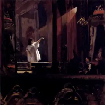 Ярким представителем импрессионизма в Великобритании 1880-х — 1890-х годов был художник Уолтер Сикерт. Широкую известность он получил изображениями сцен представлений в лондонском мюзик-холле Старый Бедфорд. Часто на картине были изображены не реальные события, а их отражение в зеркале. В отличие от французских импрессионистов он поднимал в своих картинах острые социальные и нравственные проблемы. В его изображениях мюзик-холла беспорядочные группы зрителей галёрки противопоставляются подчёркнуто богатому интерьеру и хорошо одетой публике бенуара и партера[7].