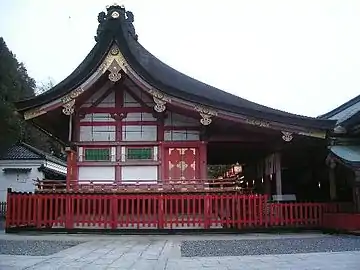 Сохранившийся рисунок храма 1786 года свидетельствует о том, что двухэтажные входные ворота были построены Тоётоми Хидэёси.