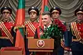 Участие в торжественном мероприятии принял освободивший пост главы государства Евгений Шевчук. Он поблагодарил свою команду за поддержку и пожелал избранному президенту улучшить жизнь приднестровцев. Первый президент Приднестровской Молдавской Республики Игорь Смирнов также выступил на церемонии, назвав её «ещё одной крупицей утверждения независимости Приднестровья» и поблагодарив ветеранов, которые «учат не продавать Родину». Игорь Смирнов, поздравляя нового главу республики, сказал, что «вместе мы всё сделаем, Вадим Николаевич»[5].