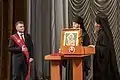 Руководитель Центризбиркома Елена Городецкая совместно с председателем Конституционного суда Олегом Кабалоевым вручили Вадиму Красносельскому перевязь и удостоверение президента ПМР.