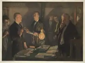 Вице-президент Кулидж находился в семейной усадьбе в Вермонте, где не было электричества и телефона, когда он получил известие от посланника о смерти Гардинга. Как новый президент, Кулидж намеревался принять присягу и поприветствовать собравшихся снаружи репортёров. Он оделся в спальне наверху, помолился и спустился вниз[1].