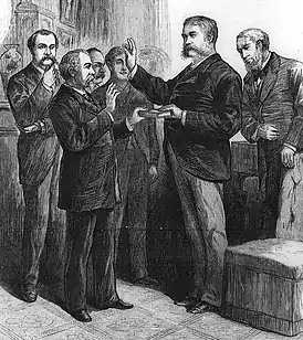 Когда Артур и его гости отправили гонцов, чтобы найти судью, который мог бы принести президентскую присягу, была полночь. Первым юристом, которого удалось найти 20 сентября, был судья Верховного суда Нью-Йорка Джон Брэйди. Около 2 часов ночи Брэйди принёс присягу Артуру в частной квартире Артура на Лексингтон-авеню в Нью-Йорке. Вскоре, спустя два дня, после приезда в Вашингтон Артур повторно принял президентскую присягу, которую проводил главный судья Моррисон Уэйт. На повторной инаугурации также присутствовали бывшие президенты Улисс Грант и Ратерфорд Хейс[3].