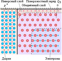 слой у поверхности полупроводника, в котором тип электропроводности отличается от типа электропроводности в объёме полупроводника в связи с наличием электрического поля поверхностных состояний, внешнего электрического поля у поверхности или поля контактов разности потенциалов.