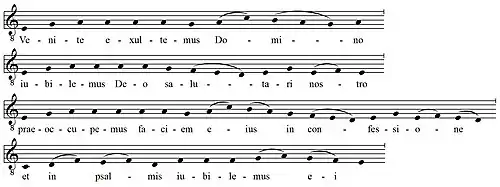 - «Приидите, возрадуемся Господу». В версии Psalterium Romanum текст несколько отличается от (стандартной) версии Psalterium Gallicanum (Вульгаты).